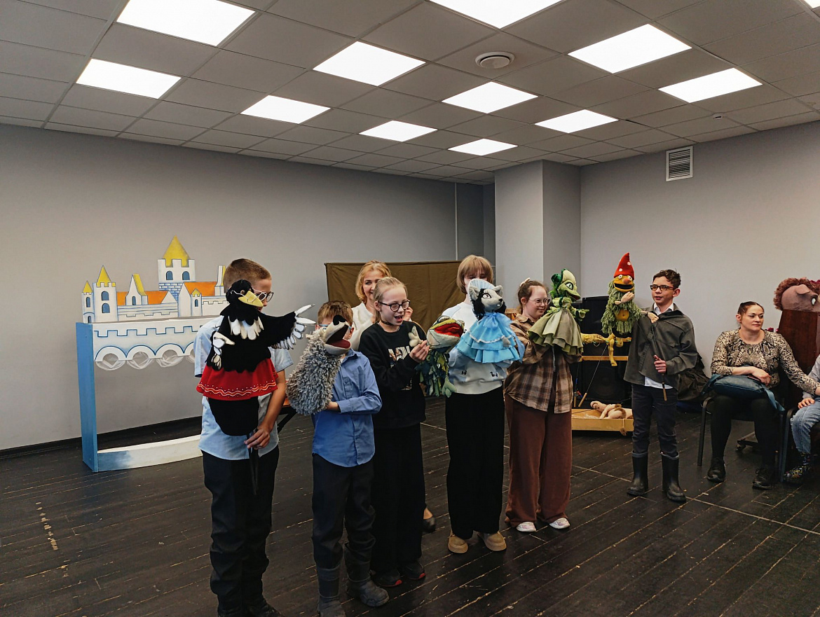 Для ребят провели экскурсию и инклюзивный мастер-класс «Трогательные сказки». Вместе с актрисой Екатеринбургского театра кукол Ириной Кузьминой дети смогли не просто посмотреть на кукол, а потрогать их руками, узнать, как они устроены, из чего сделаны, как ими управляют. А потом и сами попробовали оживить героев – разыграли небольшие театрализованные представления.